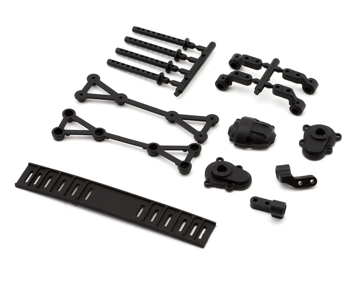 This crawler comes with a Hobbywing brushless motor and ESC, a metal gear micro servo, and beadlock wheels with aggressive 1.3-inch soft compound tires. The RTX-4C 4-Channel 2.4GHz Transmitter allows full control with adjustable trims and endpoints, while the 3S LiPo battery and USB charger make it ready to run right out of the box. Additionally, an optional two-piece body lets you run it as a cab only or add the included bed for extra customization.