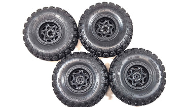 Used, Axial 2.2 Falken WildPeak M/T AX31077 Tires w/ Plastic Bead Lock Wheels.