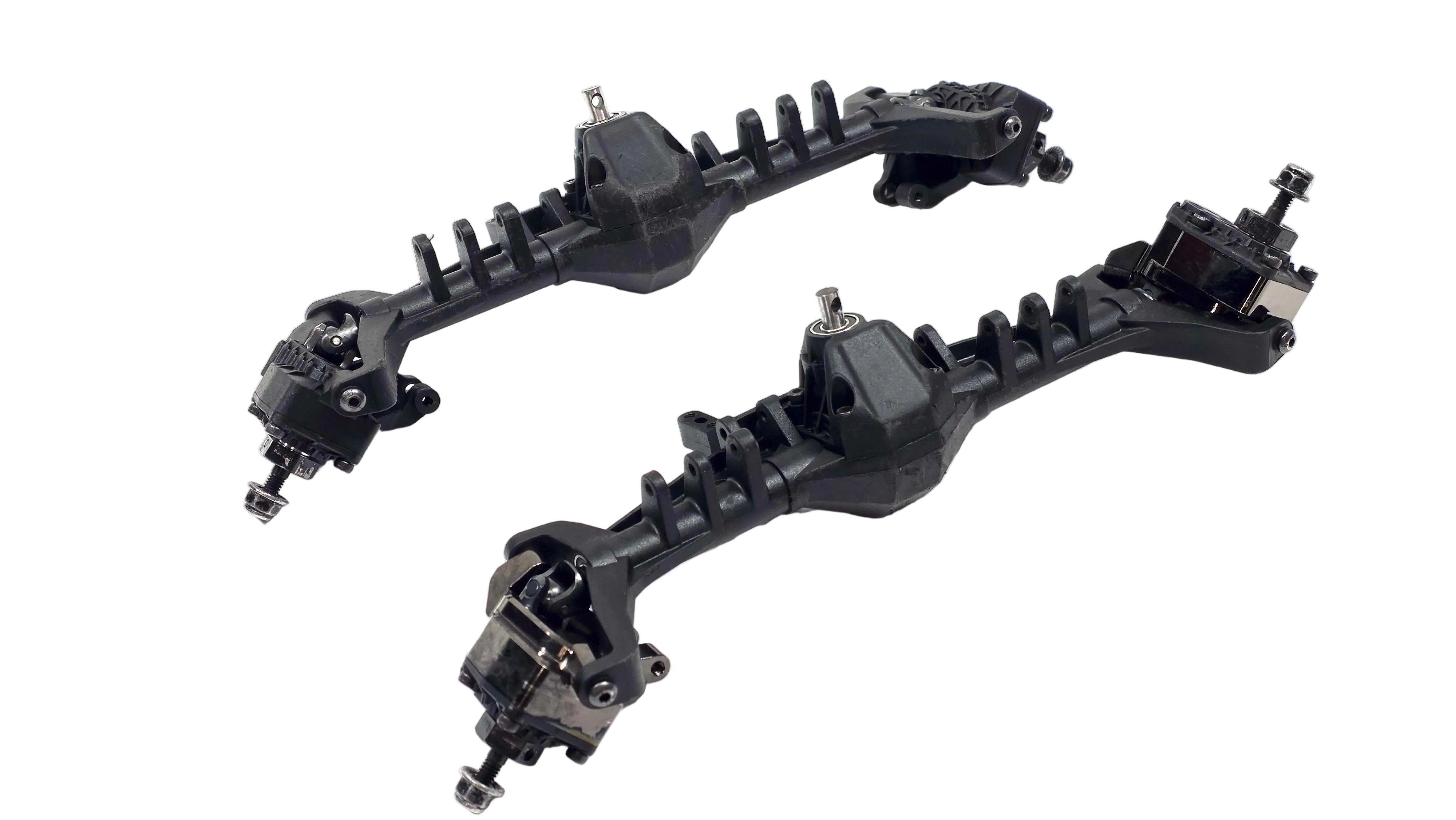 Low Run Time, Axial Capra 4 Wheel Steering Portal Axle Set w/ SSD Brass Steering Knuckles.