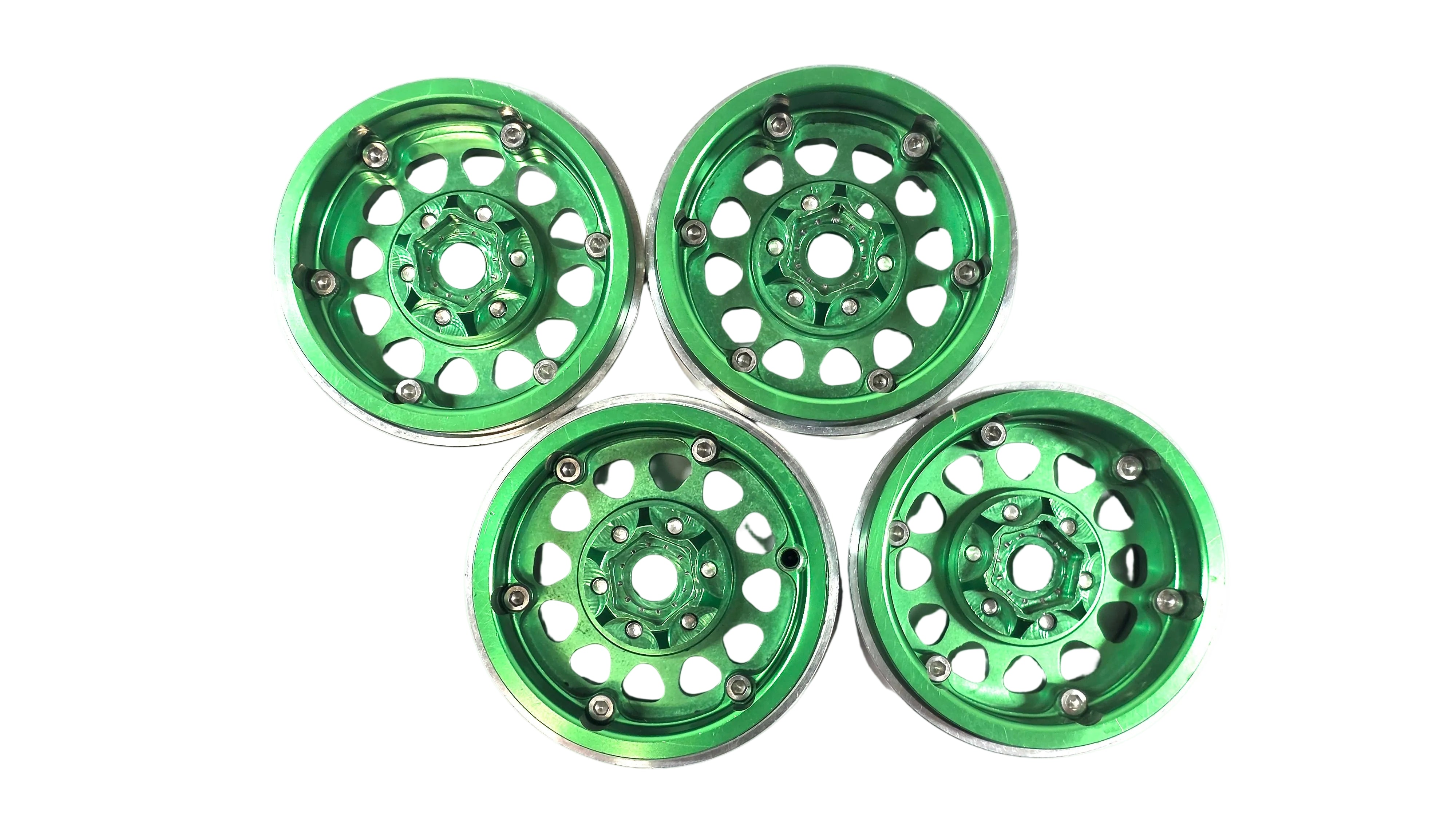 1.9 Green Aluminum Bead Lock Wheels Set of 4 w/ Hubs